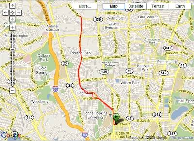 Today's run was towards the Hampden to see the Christmas decorations. What a sight! Will be going there again to get the pictures. Jay joined me on today's run. I had planned initially for 5 or 6 miles but ended up doing 12. The weather was a nice 48 and the sights were pleasing -- couldn't stop. Yeah, right! Okay, that's only half the truth, the other half is we got lost. I "thought" I knew my way to the Hampden but we ended up taking a scenic route trying to find our way.